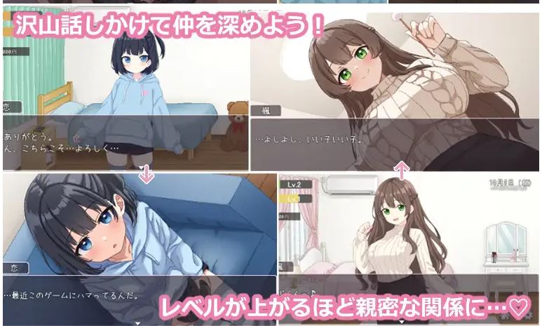 ◆与义姐妹甜蜜同居的像素风模拟游戏!本作是以像素动画呈现的同居生活模拟游戏。通过与姐妹互动提升好感度等级。