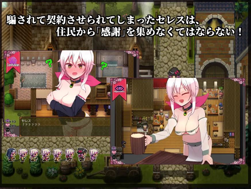 魔法使赛雷斯所造访的城镇,是契约公会所支配的城镇!被欺骗而被迫签约的赛雷斯,必须得到居民们的“感谢”!真丢脸!太色情了!契约会做很多事!快节奏RPG!